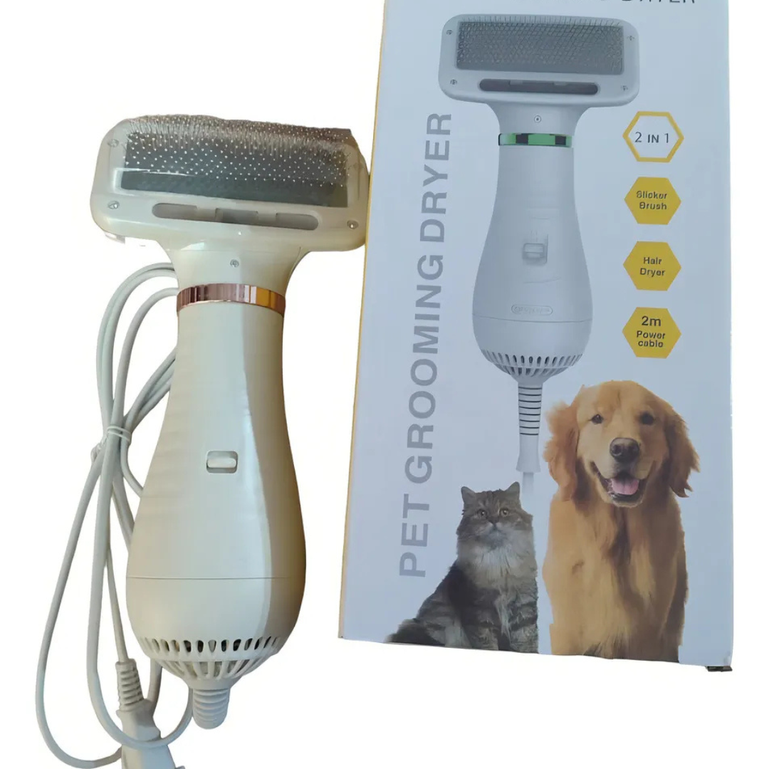 Si cada baño termina con tu casa llena de pelos, tu mascota nerviosa y tú agotado/a… este Cepillo y Secador de Mascotas 2 en 1 está hecho para ti.